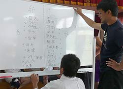 弁慶と牛若丸に別れて踊るメンバーを決めます