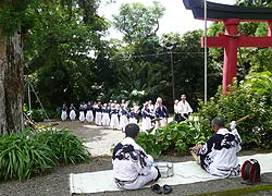 この後お寺に行き6曲(ひと庭、という)を踊ります。